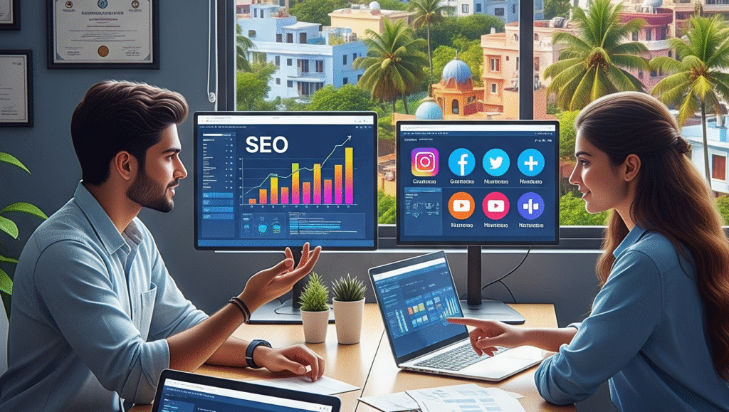 Most learners can manage well with 10-14 hours per week. At LDA, our digital marketing course in Mangalore is designed to fit into your college or work schedule, with flexible class timings and task-based learning.